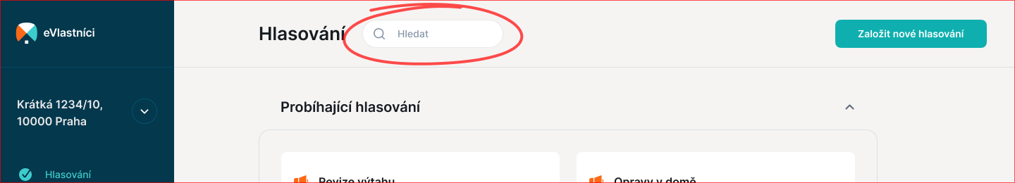 Vyhledávání vám pomůže najít hlasování dle názvu.