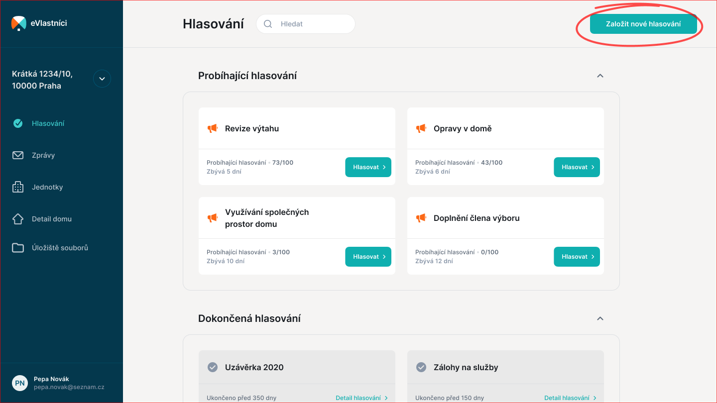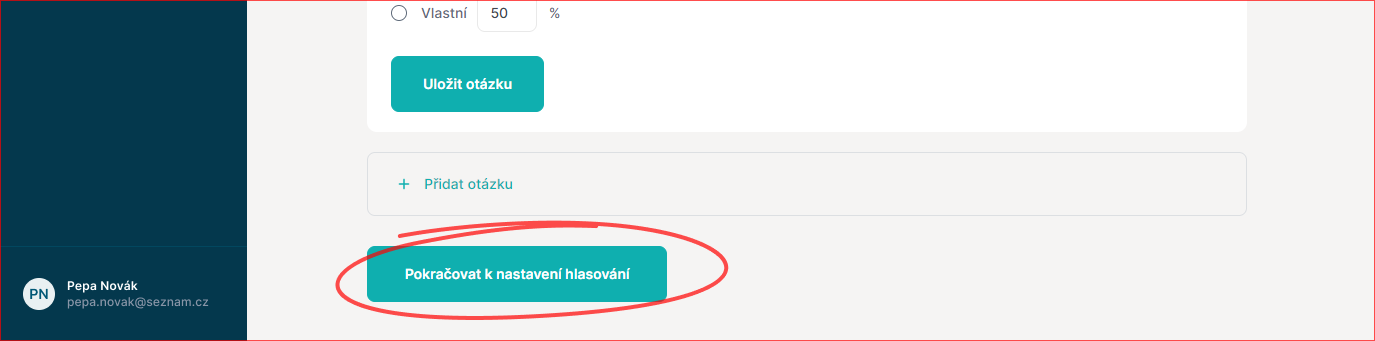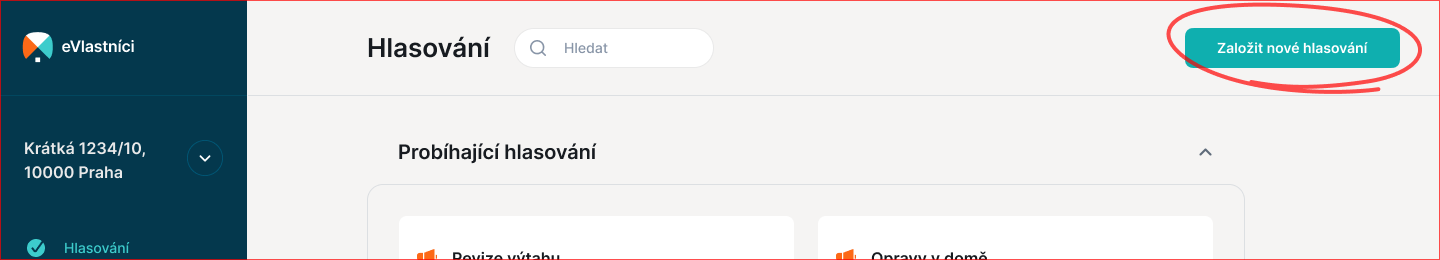 Proces tvorby nového hlasování začnete kliknutím na tlačítko "Začít nové hlasování" v sekci hlasování.