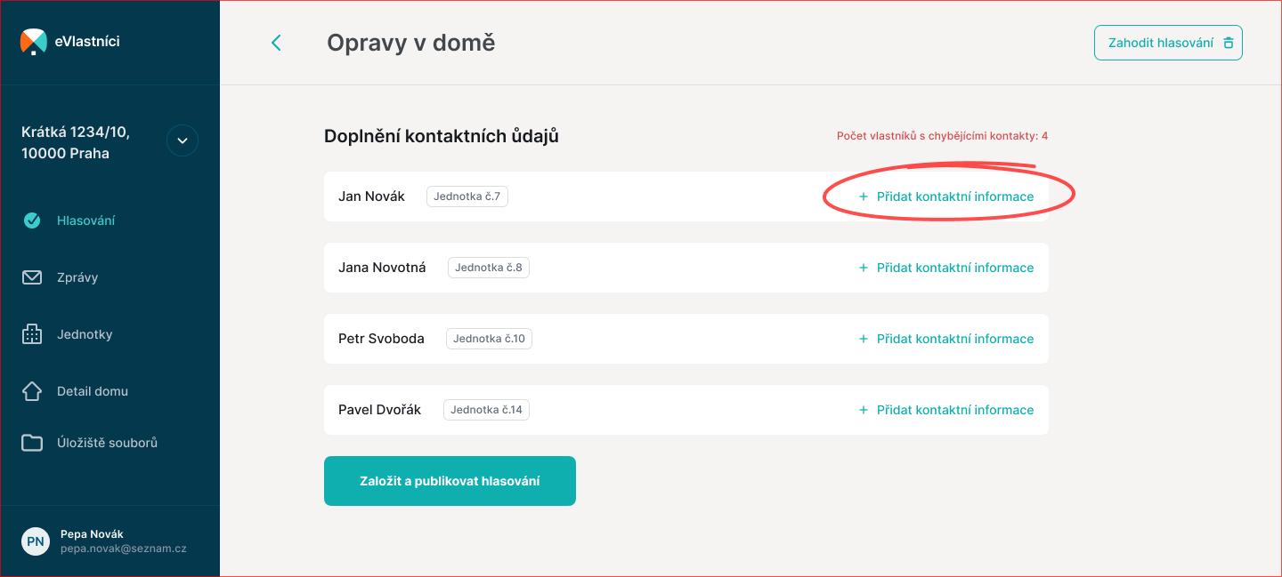 Bez kontaktních údajů se vlastníci o hlasování nedozvědí!